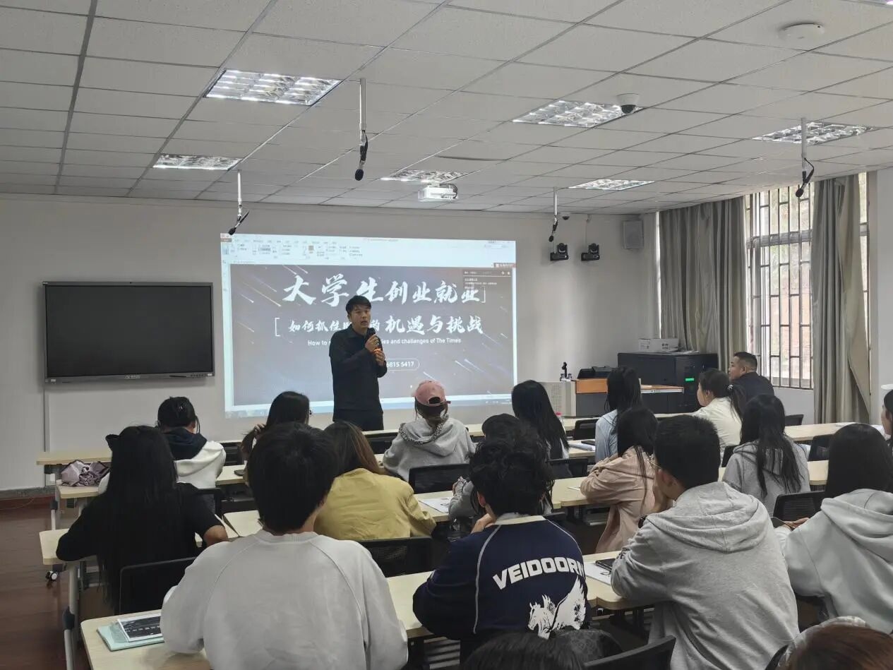 为扎实做好2026年“挑战杯”大学生创业计划竞赛、第十六届全国大学生电子商务“创新、创意及创业”挑战赛等学科竞赛,提升学生项目申报质量,4月2日,文法学院邀请“挑战杯”资深指导专家罗三长来院开展专题培训暨院赛点评。培训会由学院党委副书记张译文主持。