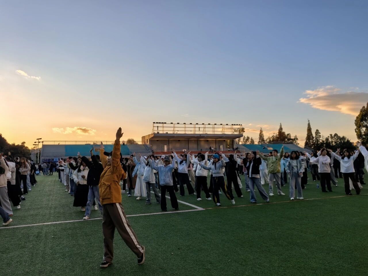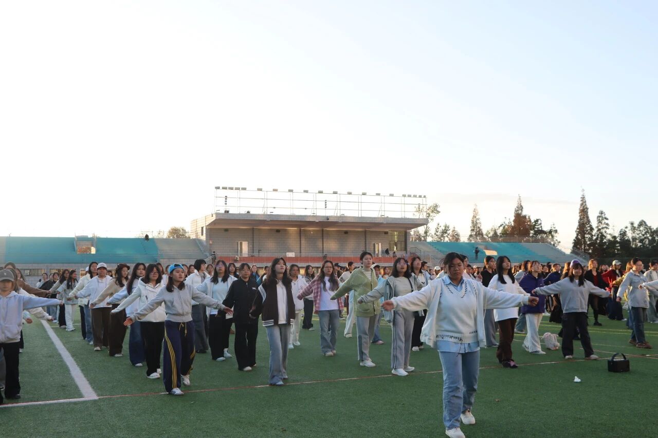 为迎接运动会落实校园体育锻炼要求,增强学生身体素质,11月23日,文法学院组织学生在我校北区田径场开展广播体操集中训练活动,同学们以饱满热情投入其中,展现了积极向上的精神风貌。